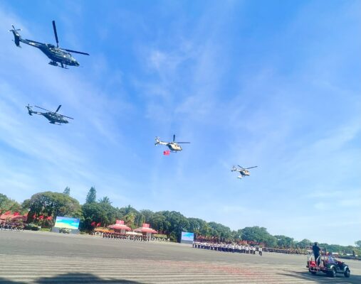 Band displays, bike stunts, and skydiving were also performed. The parade also witnessed a fly-past by Army aviation Dhruv and Rudra helicopters.