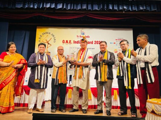 A moment of pride as Shri Techi Gobin Ji, President, Arunachal Vikas Parishad, was awarded for his dedicated service in preserving indigenous faith, culture of Arunachal Pradesh. pic.twitter.com/CgxDIuAaZL
