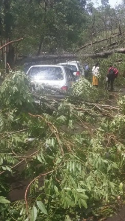 Visuals emerged on social media of trees uprooted and rooftops were blown away. Public and private property was also damaged in many places. So far there have been no reports of any injuries till the filing of this report.