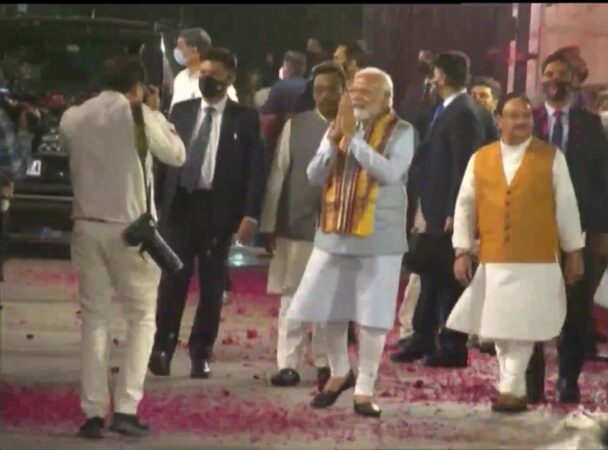 - Prime Minister Narendra Modi arrives at BJP Headquarters in Delhi. The party emerged victorious in Goa, Manipur, Uttarakhand and Uttar Pradesh.