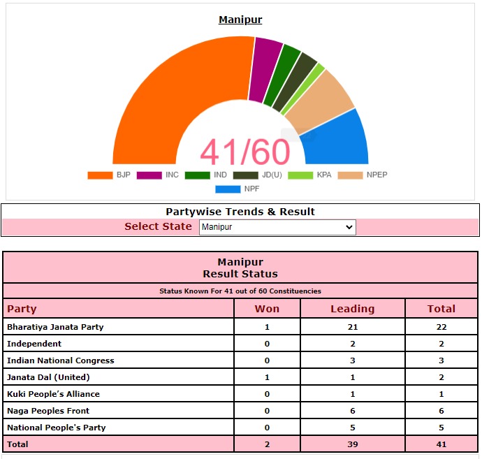 BJP is leading on many seats in Manipur but is yet to reach the majority mark.