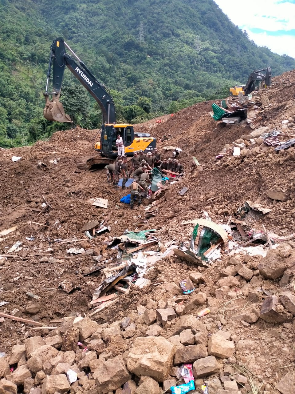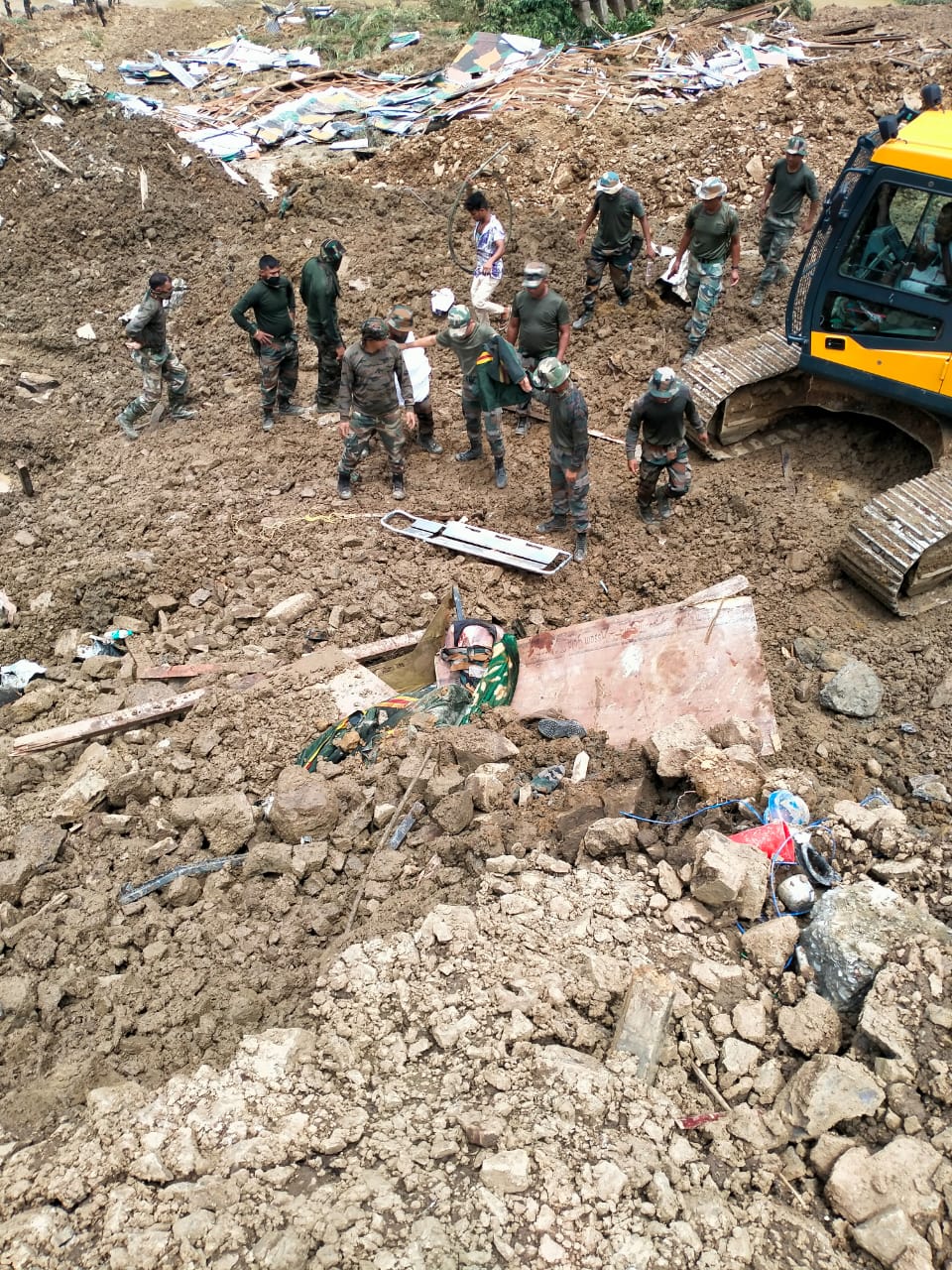 The landslide occurred on Wednesday night at the Territorial Army Camp near the Tupul yard railway construction site. Efforts have been intensified by the Indian Army, Assam Rifles, Territorial Army, and the central and state disaster forces, to rescue those still stuck beneath the debris.